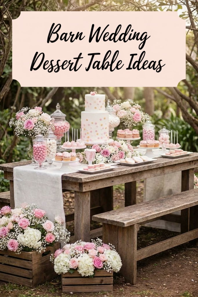 From delicate mini desserts to rustic cakes and bite-sized treats, a barn wedding dessert table can turn a simple moment after dinner into one of the most photographed corners of the celebration.
