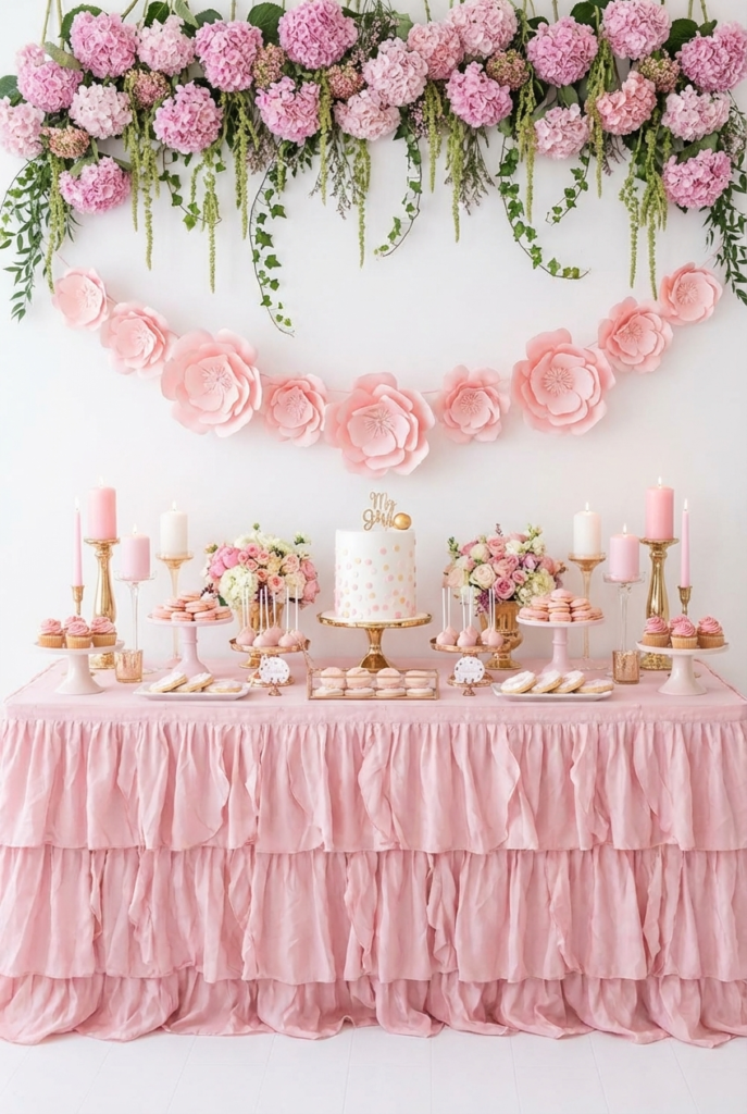 Soft Pink Floral Dessert Table