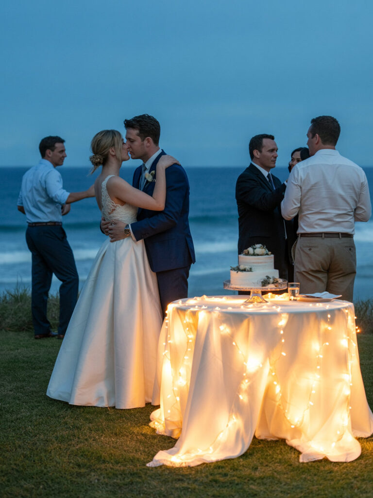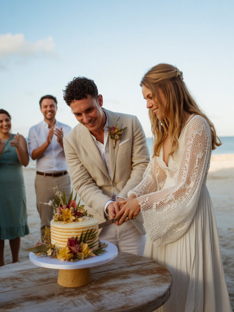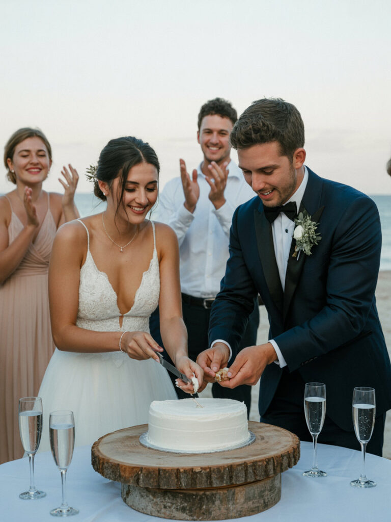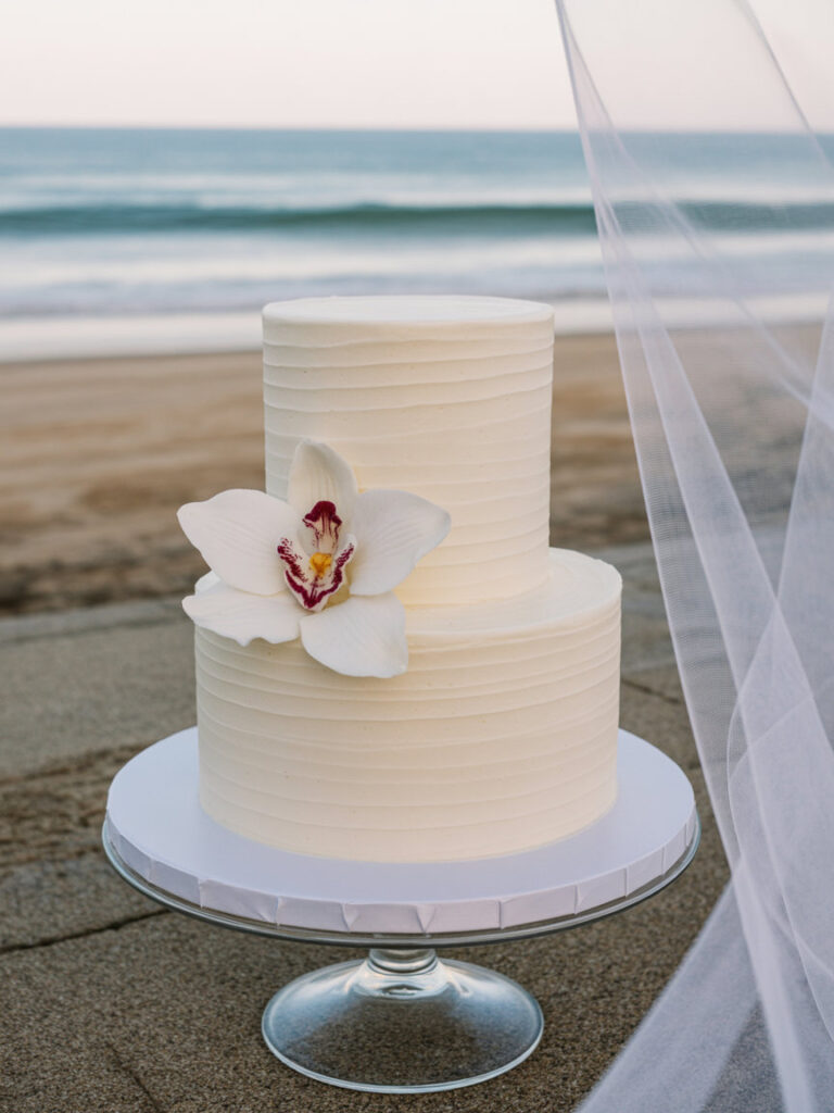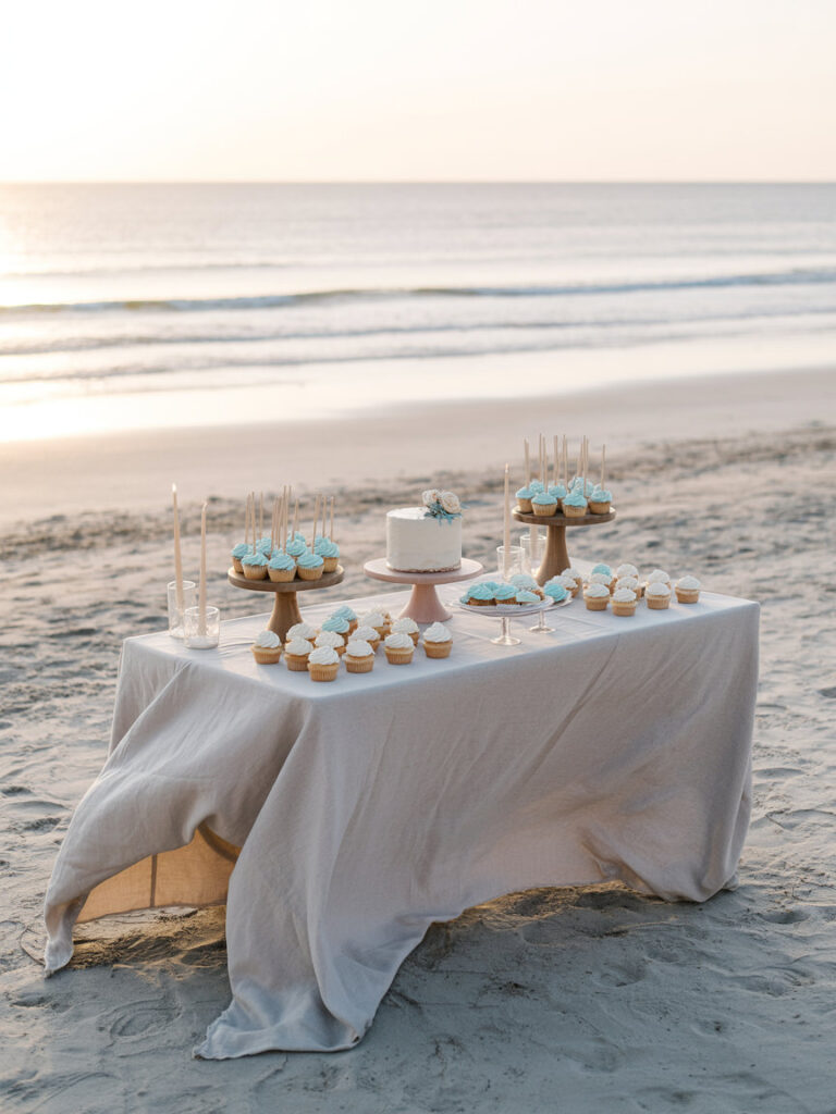 Pro tip: If your reception is directly on the beach, place a solid board beneath the cake table to stabilize the setup. It sounds simple, but it’s a total game-changer — no wobbling tiers, no sinking legs, just clean photos and peace of mind.