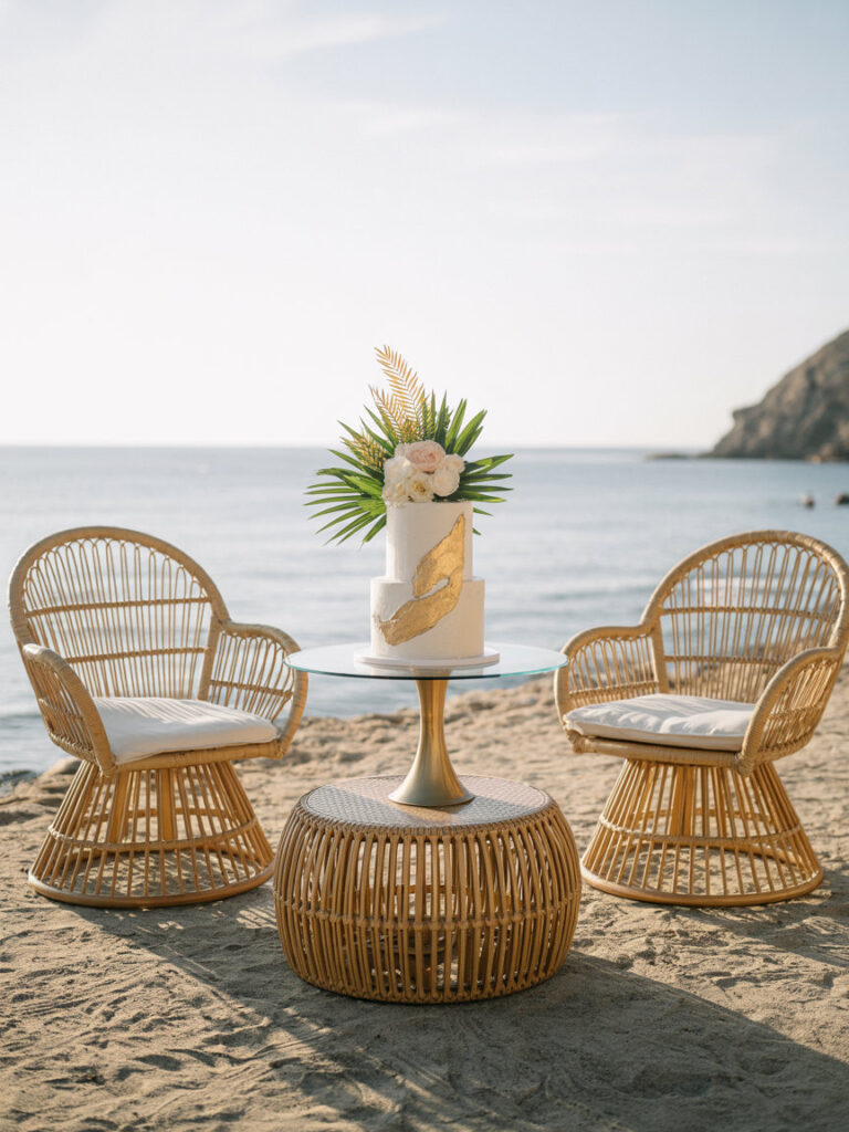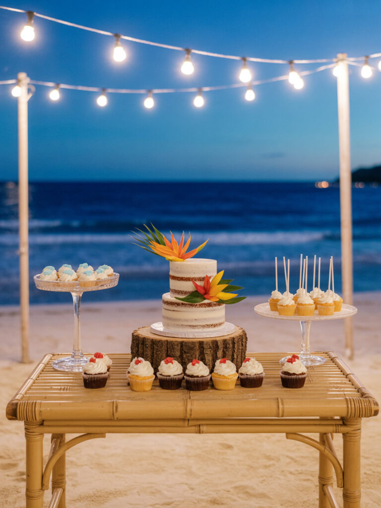 - Rattan or Bamboo Cake Stands – Perfect for rustic or boho-luxe seaside themes.