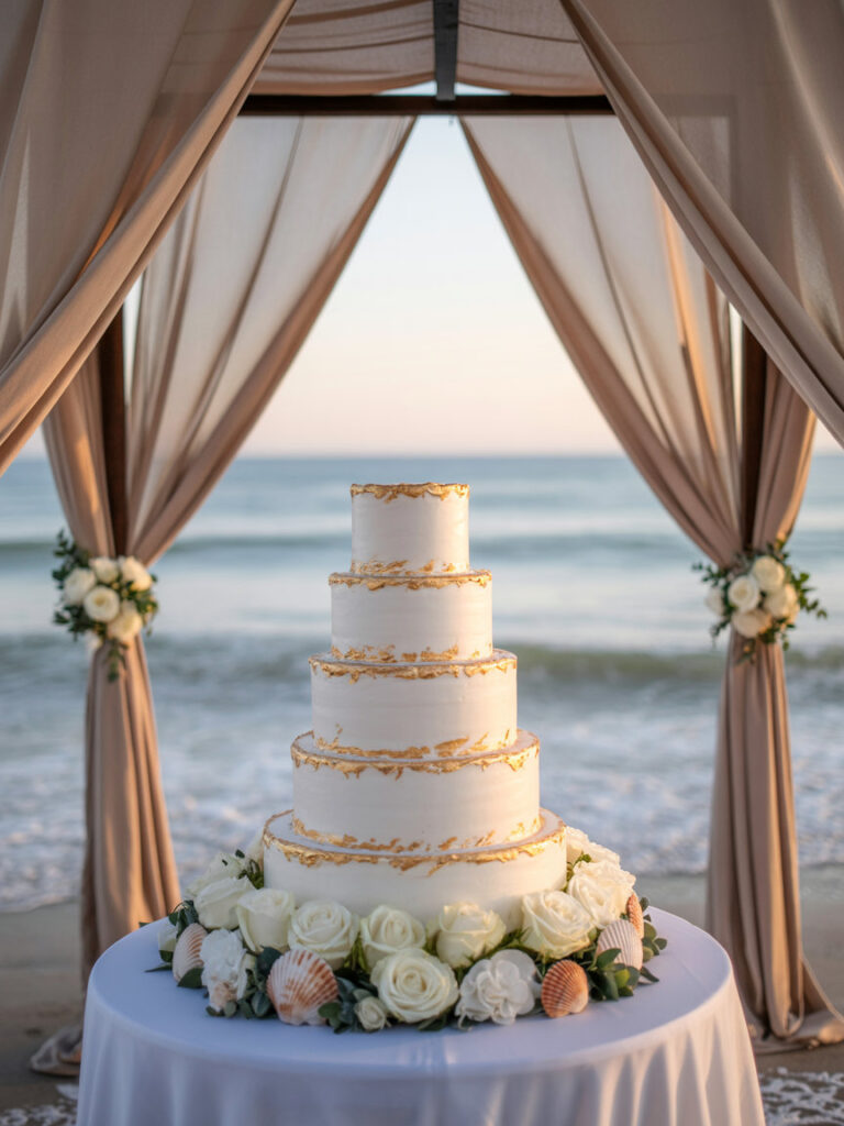 So, whether your dream cake is boho and barefoot or elegant and gold-leafed, remember this — the perfect beach wedding cake isn’t about perfection. It’s about presence. It’s about joy. And it’s about having something sweet to look back on when the waves have long washed the footprints away.