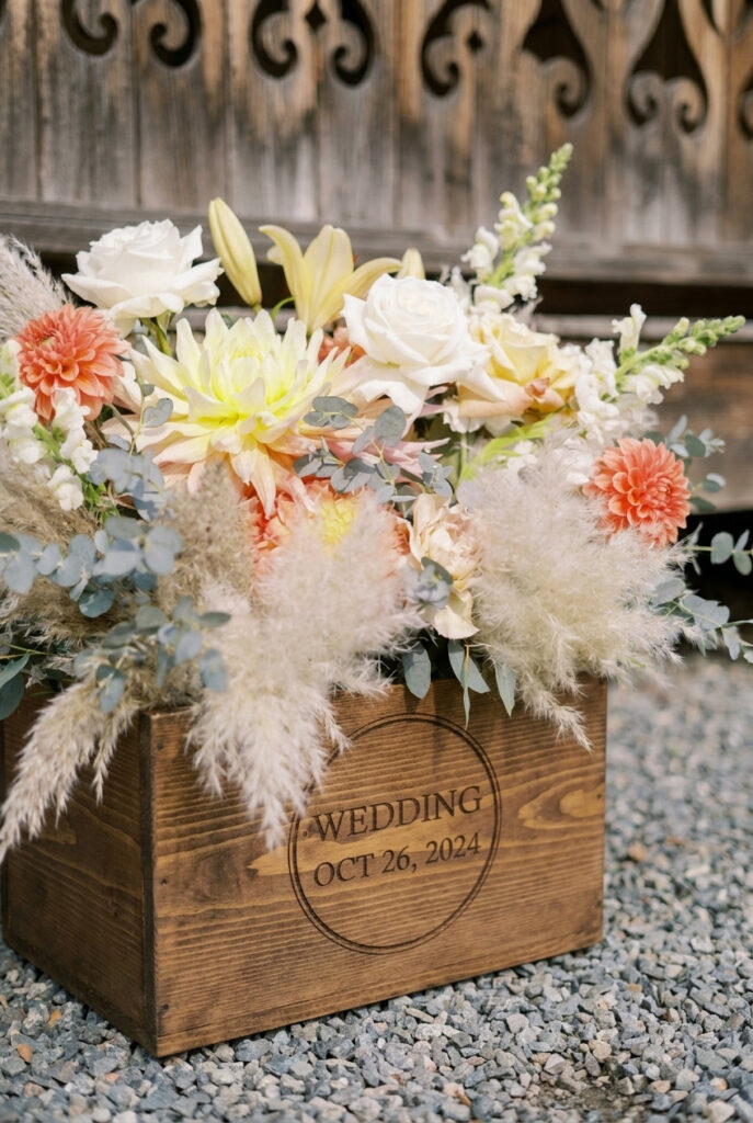 This detail is the perfect example of how small touches can make a big impact. A simple wooden crate instantly sets the tone with its warm, rustic feel, while the personalized engraving adds a meaningful, custom element that makes the space feel uniquely yours.