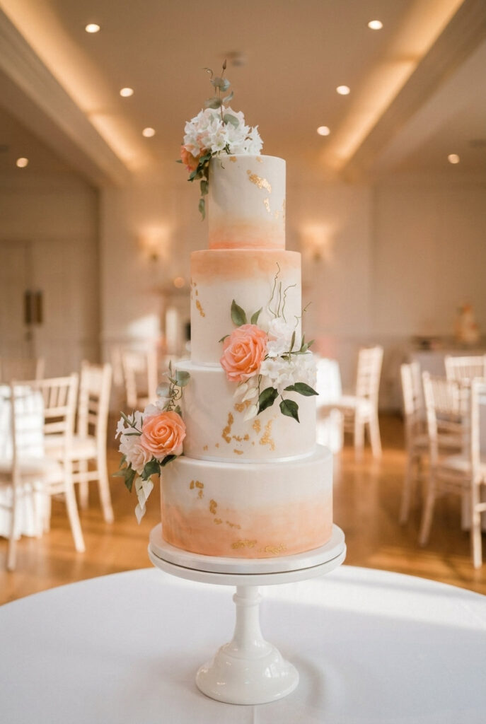 Elegant Peach Ombre Wedding Cake with Floral Accents