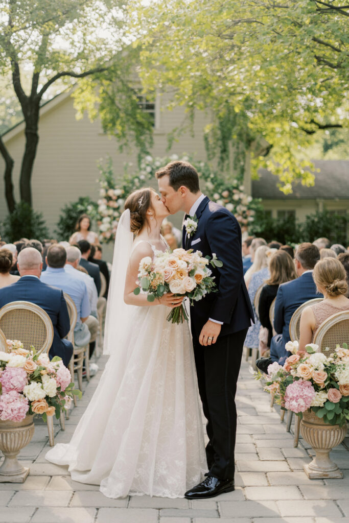 Romantic Peach Garden Ceremony with Classic Aisle Florals