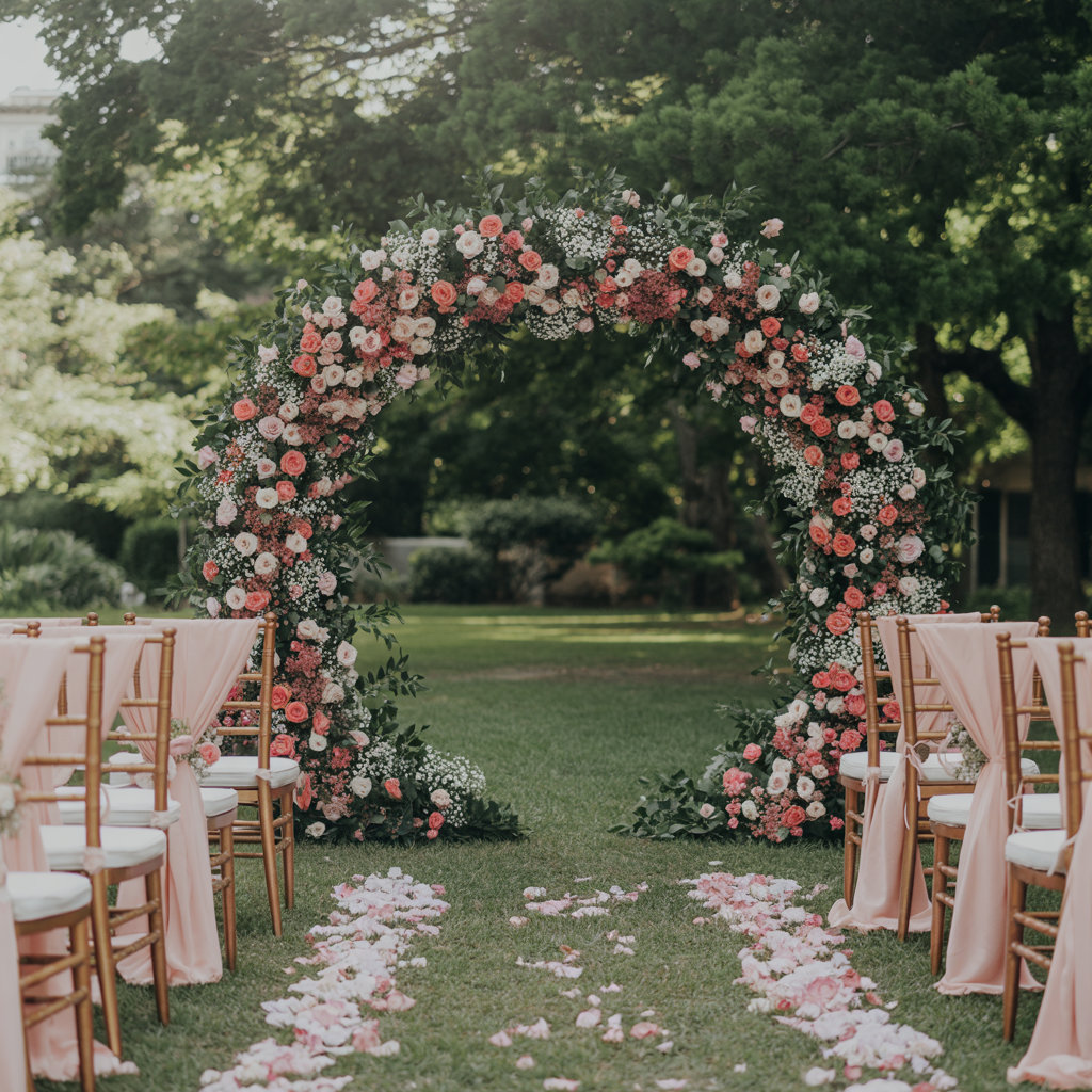 If you’re dreaming of a ceremony that feels romantic, timeless, and completely immersive, this peach garden setup is the kind of design that creates a truly unforgettable moment.