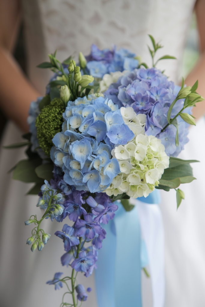 A blue and white wedding bouquet has a quiet kind of elegance—the sort that never feels trendy, yet always feels perfectly in place.