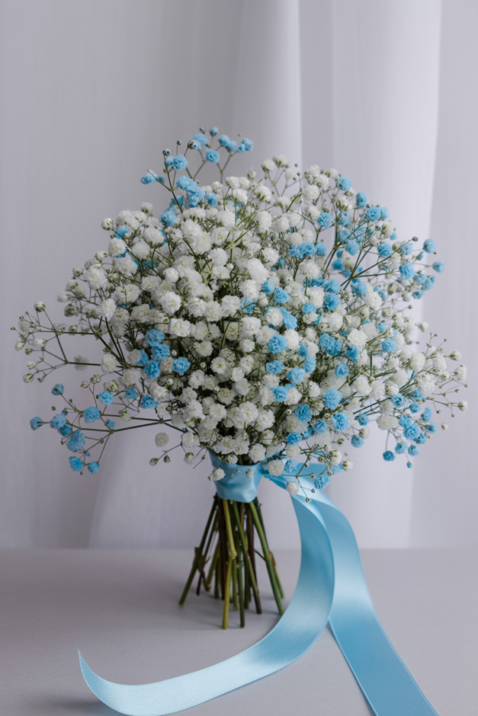 Blue-Tinted Baby’s Breath Wedding Bouquet