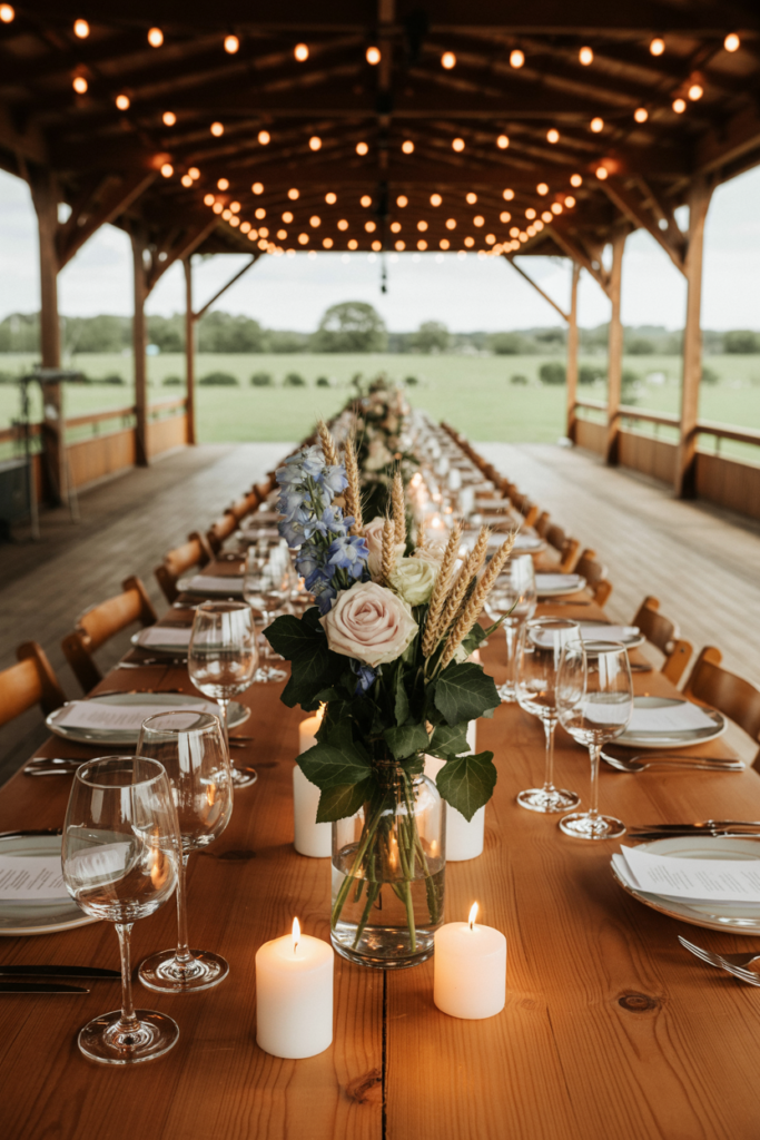 At the end of the day, the best barn wedding centerpiece ideas aren’t about perfection—they’re about atmosphere. A few wildflowers in a mason jar, a lantern glowing softly at dusk, or a simple garland of greenery can transform a rustic table into something truly memorable.