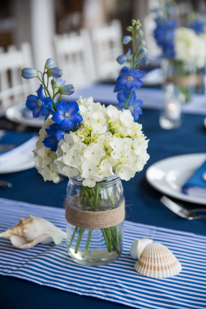 Nautical Royal Blue Mason Jar Wedding Centerpiece